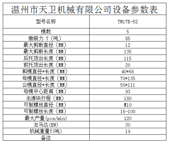 您當(dāng)前的位置:首頁 / 產(chǎn)品中心 / 五模五沖多工位冷鐓機(jī) / └ TW17B(M10)多工位冷鐓機(jī) / TW17B-5S全自動(dòng)多工位冷鐓機(jī)